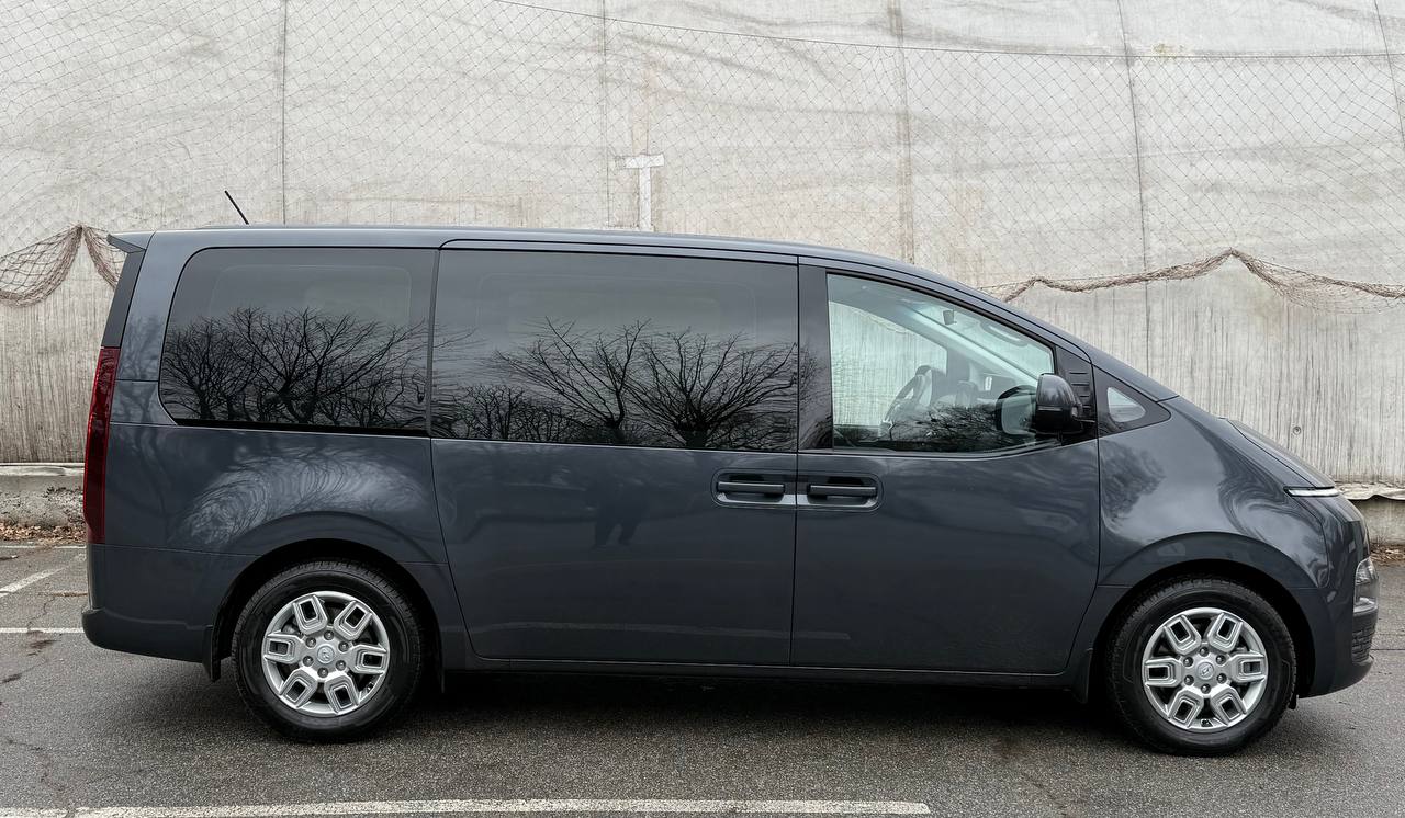 Hyundai Staria is a stylish and spacious 9-seater minivan, perfect for family trips and corporate tasks. Its modern design, high-tech features, comfortable interior, and fuel-efficient engine make it an excellent choice for passenger transportation. It stands out with its convenient seat transformation, ample cargo space, and advanced safety systems.